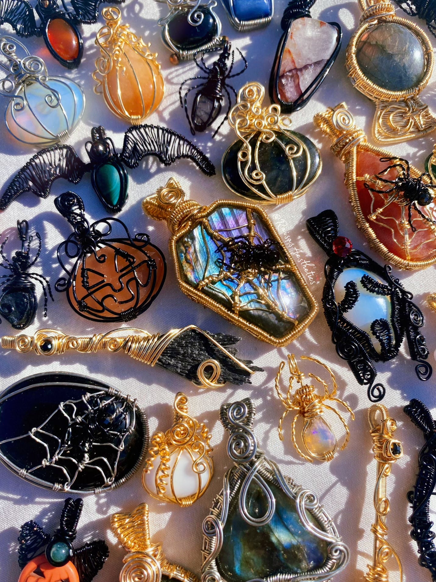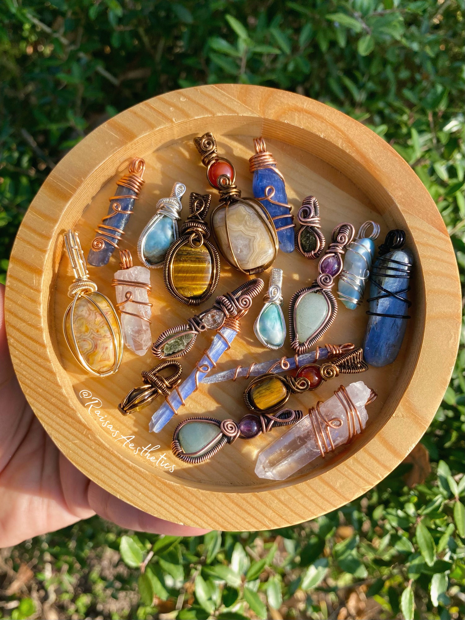 Hi friend! My name is Raisa (ry-EE-suh), and I am the artist behind Raisa’s Aesthetics. <33 I am a self taught wire wrap artist based in South Texas. Raisa’s Aesthetics originated in June of 2020 after I lost my sales and marketing job due to a global pandemic. I’ve always considered myself an *Artist*, but never thought to create a business out of it. All until I finally listened to my boyfriend and parents, and took a leap of faith into starting my small business. Fast forward to the beginning of June 2022, I started to feel confident and offer wire wrapped pendants to my small business. As you can see, my shop doesn’t have many paintings and resin pieces as I mainly focus on wire wrapped jewelry and creations now. Thank you so much for being here and allowing my inner child to smile! (: All items are handcrafted with love, good/positive intentions, and cleansed upon request before shipped to their forever homes. Facts about me: I am a 27 year old Mommy to 2 boys, a cat, and beloved dog. You may have seen them a few times if you follow me on social media! My sun sign is Leo, my favorite color is emerald green, and my favorite crystals I’m working with at the moment are Ocean Jasper, Labradorite, and Flower Agate. Follow me @RaisasAesthetics on Instagram, Facebook, & Tiktok for updates and content! ~ 222 ~