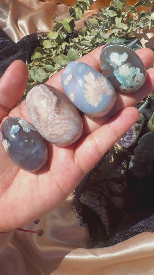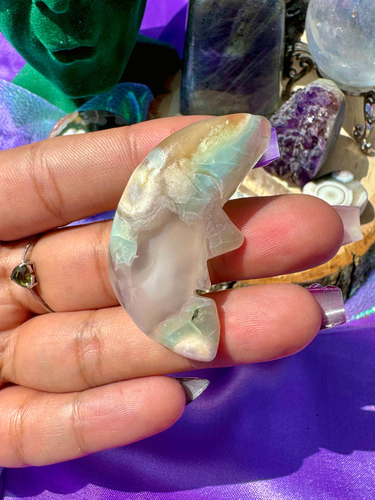 Flower Agate Moon Carvings *YOU CHOOSE*